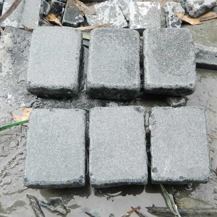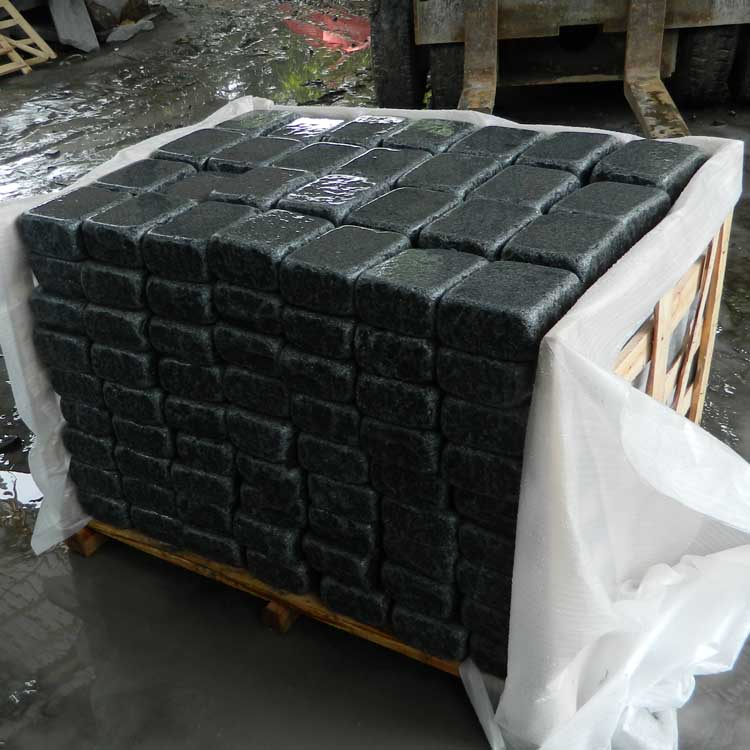 After tumbling. Wet grey granite pavers: