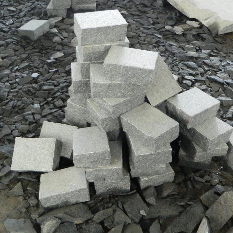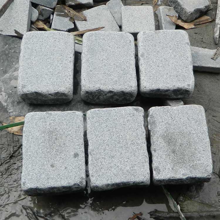 Dry tumbled grey granite pavers